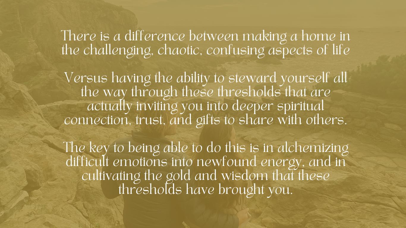 This is a path of union where transcendence and inscendence meet. The deeper you traverse your terrestrial origins, the deeper you will be called to traverse your cosmic origins, and so forth. Here, you will investigate matters of the middle-world: your relationship to work, relationships (family, friends, romantic, and otherwise), health, money, etc. This is where healthy ego development is shaped, so that you can make material what comes forth from mystical experiences. Your own medicine, vocation/calling, and soul gifts want to be shared with the world.